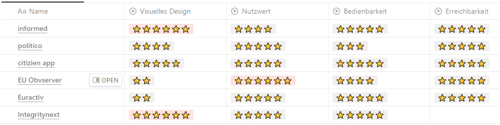 Die Community kann die Situation und Auswirkungen der verschiedenen Nachrichten in Bezug auf die EU bewerten. Vorgesehen ist dazu ein Wertungssystem von 1 - 10. Möchte man diese ausfüllen, so benötigt man a) einen Account und b) einen hinterlassenen Kommentar.