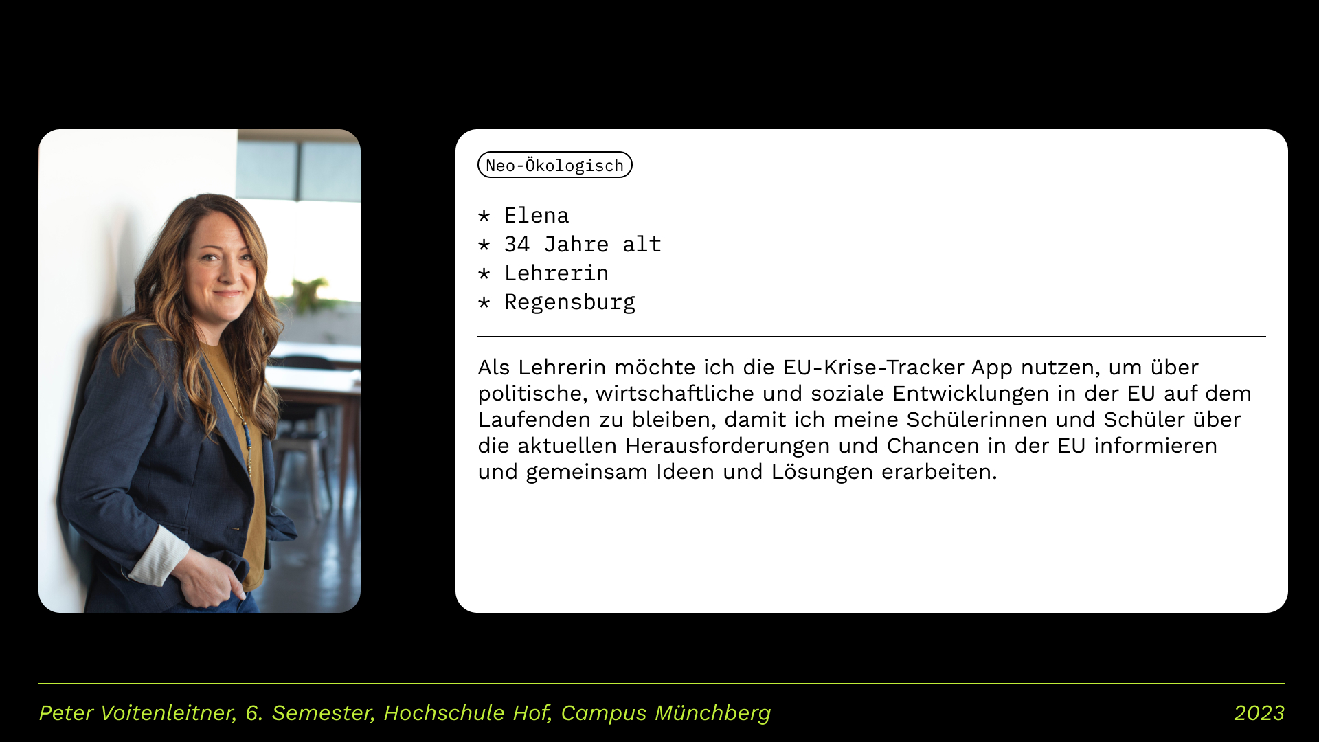 Es gibt Bedenken hinsichtlich politischer, wirtschaftlicher und sozialer Entwicklungen, die sich auf die EU und ihre Mitgliedstaaten auswirken können. Ich denke, die App kann das Bewusstsein für diese Herausforderungen schärfen und die Bürger:innen Europas dazu ermutigen, aktiv an der Gestaltung der Zukunft Europas teilzunehmen.