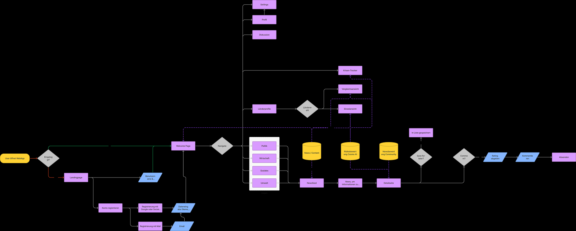 Visualisierung: Die Ergebnisse der Datenanalyse und Risikobewertung werden in der App visualisiert, um dem Benutzer ein besseres Verständnis der aktuellen Lage in der EU zu vermitteln. Dies kann in Form von Diagrammen, Grafiken oder Karten erfolgen.