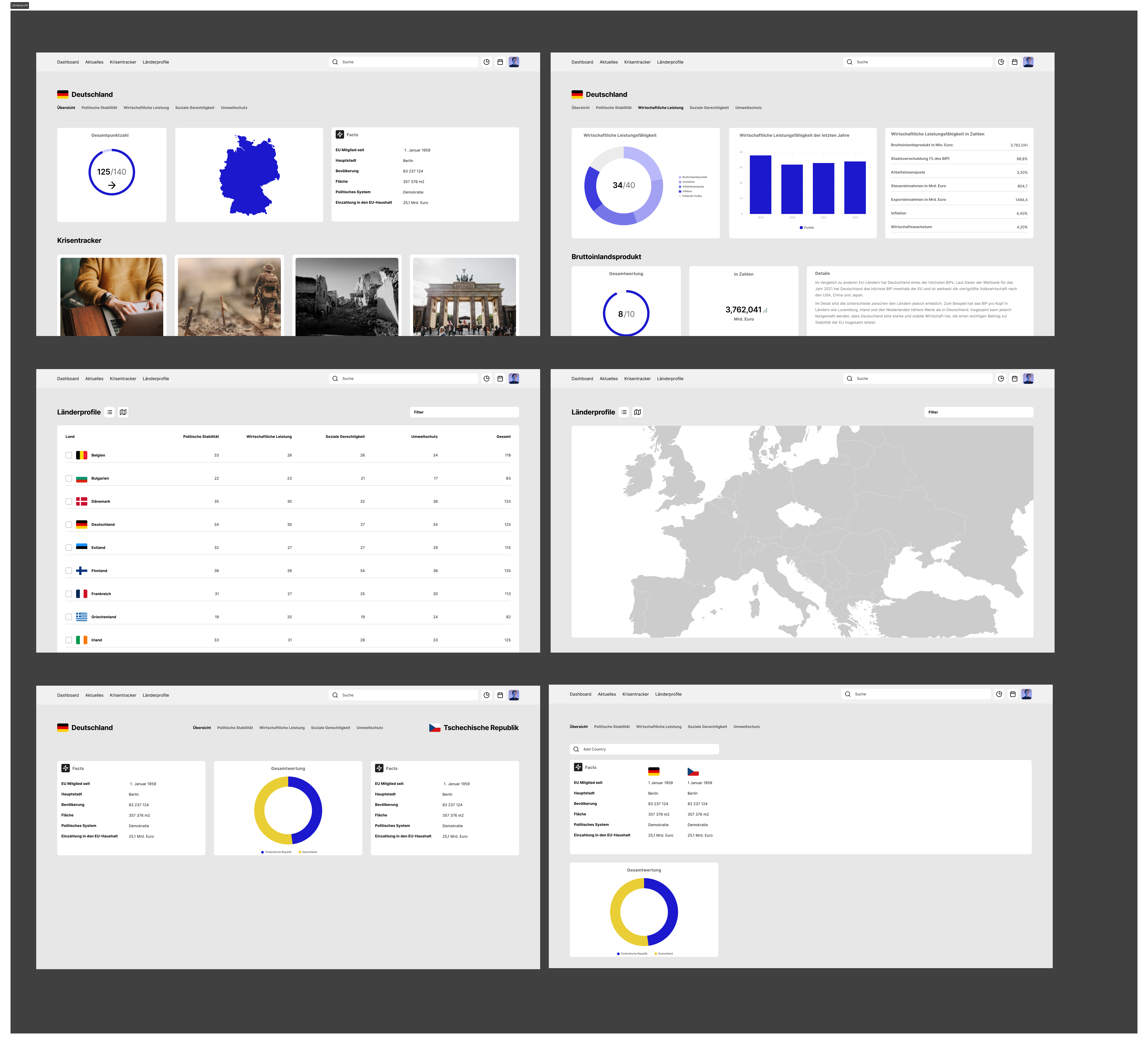 Zusätzlich würde die Applikation auch die Reaktionen der EU-Institutionen und der Mitgliedstaaten auf aktuelle Krisen oder Herausforderungen verfolgen und die Bewertungen aktualisieren, wenn sich die Situation ändert.